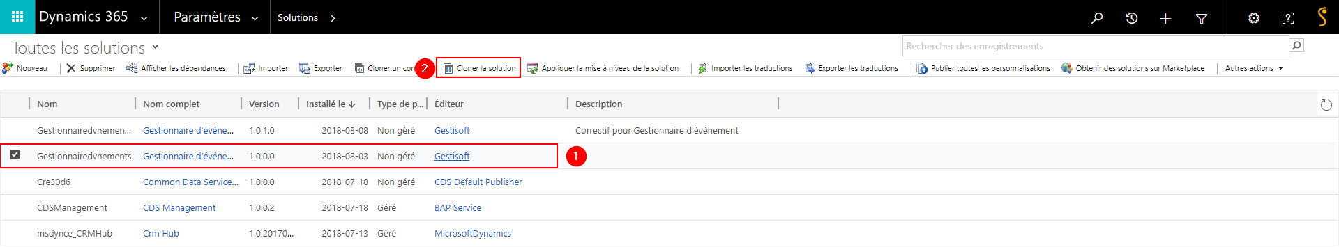 Les étapes à suivre afin de cloner une solution dans Microsoft Dynamics 365